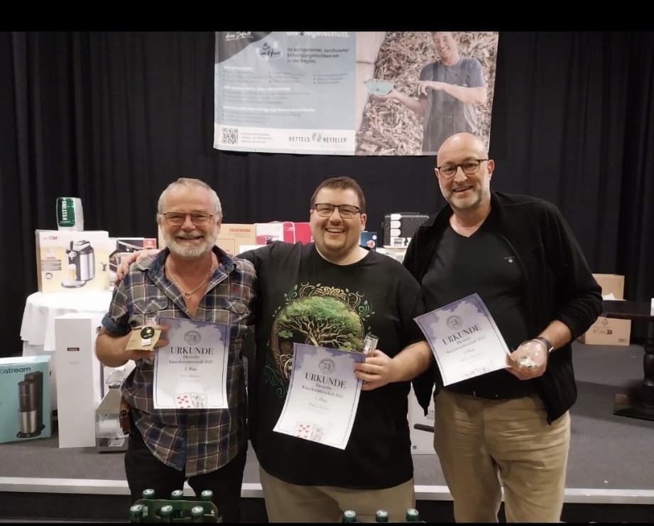 Zu Beginn der Meisterschaften wurden noch unser Ossi (Markus Scholten) sowie unser Söldner Pelle (Daniel Jöns) für jeweils 25 Teilnahmen an deutsche Einzelmeisterschaften geehrt – auch zu dieser großartigen Leistung einen herzlichen Glückwunsch!